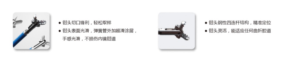 1、鉗頭切口鋒利,輕松取樣;2、鉗頭表面光滑,彈簧管外加超滑涂層,手感光滑,不損傷內(nèi)鏡鉗道;3、鉗頭鋼性四連桿結(jié)構(gòu),精準(zhǔn)定位;4、鉗頭靈活,能適應(yīng)任何曲折腔道。