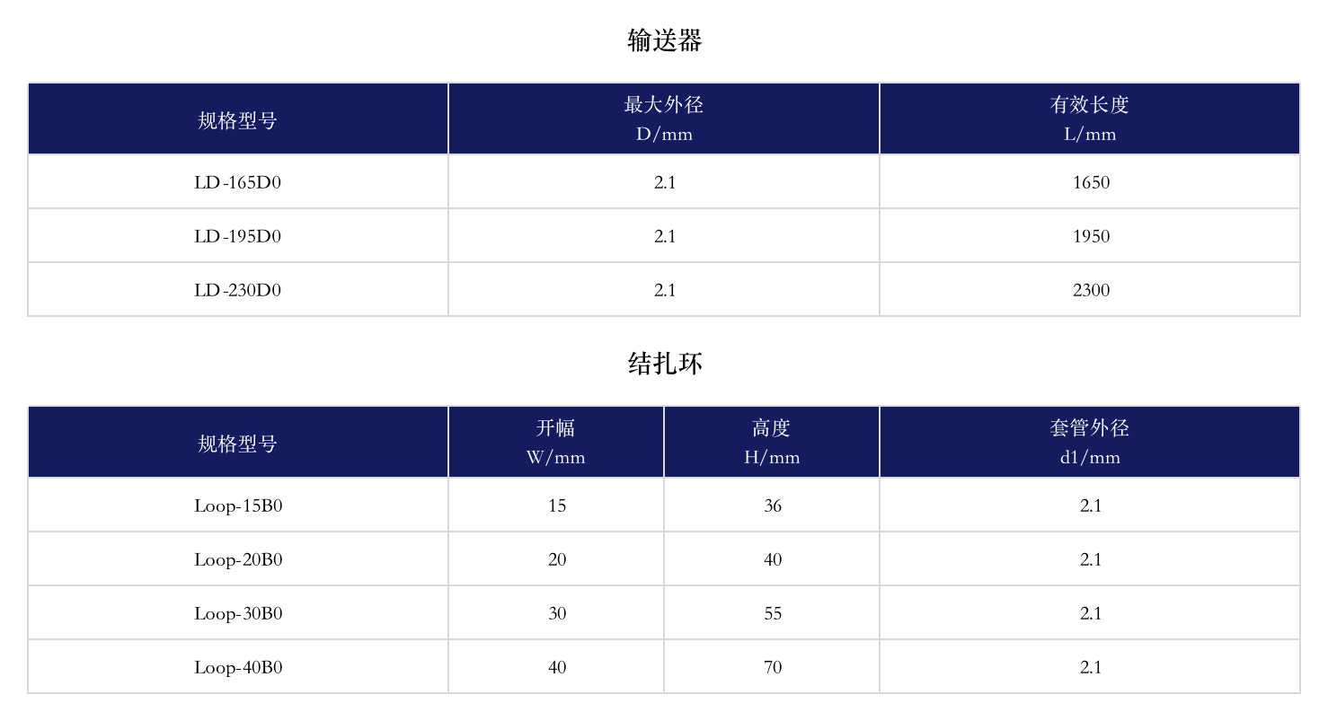1、分體式輸送系統;2、獨特的雙環設計;3、優良的選材;4、獨特的鉤頭設計。