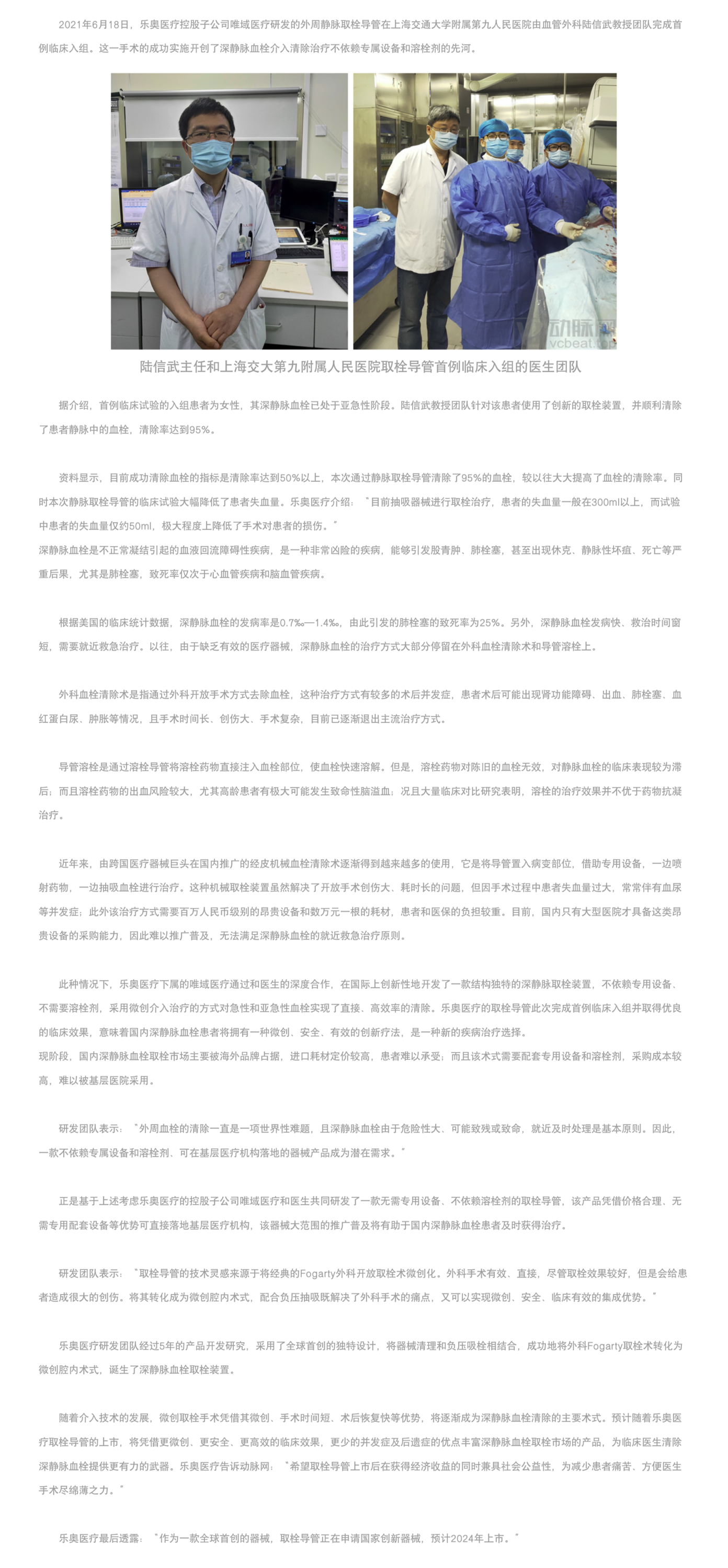 外周深靜脈血栓治療的重大突破,樂奧醫療靜脈取栓導管完成首例臨床入組